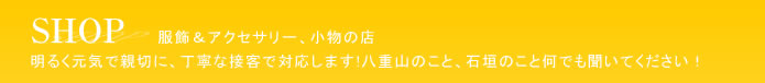 明るく元気で親切に、丁寧な接客で対応します!八重山のこと、石垣のこと何でも聞いてください!おいしいお店なども紹介します。